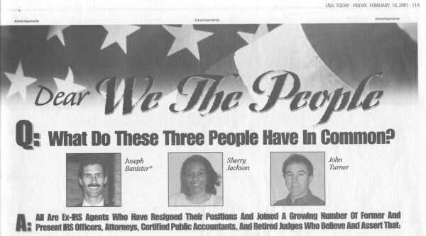 * Joe Banister was an IRS Criminal Investigation Division (IRS-CID) Special Agent, a gun-carrying law enforcement officer, fraud investigator, and CPA, who was "encouraged" to resign two years ago after confronting his superiors with the results of his own two-year investigation into claims made by tax researchers about the above allegations. Mr. Banister concluded that the tax researchers were CORRECT, and that the IRS has, in fact, been deceiving the American public and exceeding its constitutional and statutory authority. You can read his 95-page report at www.freedomabovefortune.com.