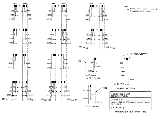 Please compare the "Left Guard", "Center Pattern" and "Right Guard" in "Drawing 5" below with the (right side) pattern used for the number "6".
